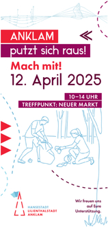 Wer diese Aktion unterstützen möchte, sollte sich aus organisatorischen Gründen bereits im Vorfeld bei Frau Frick über die 03971-835221 oder per E-Mail an c.frick@anklam.de anmelden. Selbstverständlich sind auch spontane Helfer herzlich willkommen.