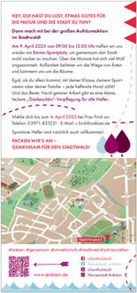 Gleich zwei große Aufräumaktionen stehen in der Hansestadt Anklam bevor, um Stadt und Natur gemeinsam herauszuputzen. Bürgerinnen und Bürger sind eingeladen, sich aktiv zu beteiligen und ein Zeichen für Sauberkeit und Gemeinschaftssinn zu setzen.
