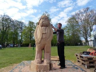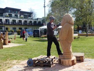 Bis zum Freitagabend arbeitet Weigelt noch im Kurpark von Zinnowitz an der Skulptur, die noch etwas Farbe erhalten soll und in ein angedeutetes Vineta-Schiff gestellt werden soll.