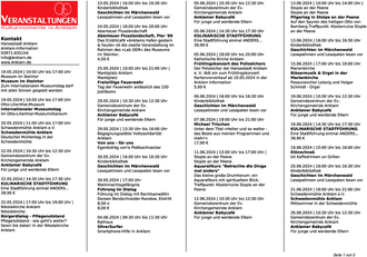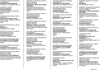 27.06.2024 | 17:00 Uhr Das kleine große Drumherum- ein 24.07.2024 | 10:30 Uhr bis 12:30 Uhr 06.08.2024 - 13.08.2024 | 13:00 Uhr bis