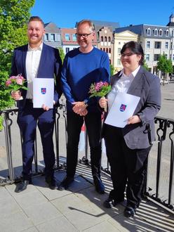 Michael Galander, Bürgermeister der Hansestadt Anklam freut sich, dass Antonia Schliep, 18 Jahre, und Robert Bolle, 31 Jahre, im September ihre Ausbildung in der Stadtverwaltung beginnen werden.