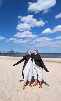 Pinguine - von links Leopold Peter als Pinguin 3 und Fiete Drahs als Pinguin 2 aus der Inszenierung "An der Arche um acht"