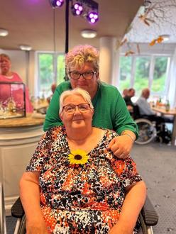 Betreuerin Diana Schwarz mit ihrer Mutter Frau Lieckfeldt beim Sommerfest „Flowerpower“