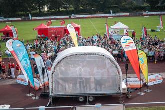 Monatelange Vorbereitungen und zahlreiche Absprachen mit unzähligen Verantwortlichen liegen hinter dem Kreissportbund Vorpommern-Greifswald e.V.. Der Sportabzeichen-Tourstopp am 10. Juli 2024 im Werner-Seelenbinder-Stadion der Hansestadt Anklam war ein voller Erfolg. Gemeinsam mit dem Landessportbund Mecklenburg-Vorpommern e.V., dem Deutschen Olympischen Sportbund und der Hansestadt Anklam wurde ein buntes Programm aufgestellt. 15 Schulen und 2 Kitas folgten der Einladung und marschierten zur feierlichen Eröffnung des Tourstopps. Der Bürgermeister der Hansestadt Anklam, Michael Galander begrüßte alle anwesenden Sportfreunde und übergab das Wort an den Präsidenten des Landessportbundes Mecklenburg-Vorpommern e.V., Andreas Bluhm. Danach wurde auf der LED-Leinwand eine Videobotschaft von der Schirmherrin des Sportabzeichen-Tourstopps, Stefanie Drese ausgestrahlt, denn die Sportministerin konnte aufgrund der Landtagswoche nicht dabei sein. Die Organisatoren freuten sich, dass das DOSB-Vorstandsmitglied für Sportentwicklung, Michaela Röhrbein die weite Anreise auf sich genommen hat. Die Vorsitzende des Kreissportbundes Vorpommern-Greifswald e.V., Christhilde Hansow eröffnete den bewegungsreichen Tag mit einem kräftigen „Sport frei!“. Für das Warm Up sorgten die Sportbotschafter von den drei Nationalen Förderern unter anderem der Paralympics-Sieger im alpinen Skisport, Gerd Schönfelder. Gleichermaßen waren regionale Spitzensportler vor Ort, wie Ramona Brussig, zweifache Judo-Paralympics-Siegerin, Maria-Sophie Hinz, zweifache Weltmeisterin im Bankdrücken und die Leichtathletik Paralympics-Siegerin Lindy Ave.