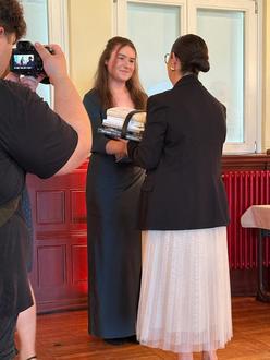Das Ergebnis ist beeindruckend: Ein Abiturdurchschnitt von 2,0, wobei 20 Absolventinnen und Absolventen eine Eins vor dem Komma erzielten. Herausragend waren Vivien Lieske und Tyrone Zeidler mit der Traumnote 1,0 sowie Anna-Lena Weitmann und Julian Rother mit 1,1. Für ihre außergewöhnlichen Leistungen wurden Lieske und Zeidler mit dem „Lilienthal-Stipendium“ des Schulfördervereins sowie einem reichhaltigen Buchpaket der Hansestadt Anklam zur Geschichte Anklams und zum Leben des großen Sohnes der Stadt, Flugpionier Otto Lilienthal. ausgezeichnet. Die erste stellvertretende Bürgermeisterin Beatrix Wittmann-Stifft überreichte die Preise, gratulierte herzlich und ermutigte die Absolventen, nach Ausbildung oder Studium in ihre Heimatstadt zurückzukehren: „Wir brauchen Sie hier, wir brauchen solche jungen Leute!“, betonte sie unter großem Applaus.