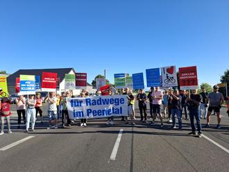 Während der Fahrt gab es zwei Straßensperrungen von je 15 Minuten, bei denen die Teilnehmenden auf die Notwendigkeit von durchgehenden Radwegen und einer allgemein besseren Radinfrastruktur aufmerksam machten.