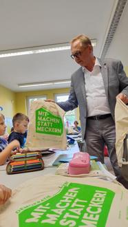 Anlässlich des Schulbeginns besuchte Bürgermeister Michael Galander die neuen Erstklässlerinnen und Erstklässler in unseren Schulen. Insgesamt 144 Kinder freuten sich über ihr „Willkommensgeschenk“. So gab es Turnbeutel vom Projekt „Demokratie leben!“, Warnwesten von der Grundstücks- und Wohnungswirtschafts GmbH Anklam sowie einen Stundenplan von der Stadt Anklam.