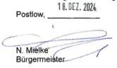 Auf der Grundlage des § 5 der Kommunalverfassung für das Land Mecklenburg-Vor-pommern (KV M-V) in der Fassung der Bekanntmachung vom 16.05.2024 (GVOBl. M-V 2024 S. 270) wird nach Beschluss der Gemeindevertretung der Gemeinde Postlow am 11.12.2024 folgende 3. Satzung zur Änderung der Hauptsatzung erlassen: