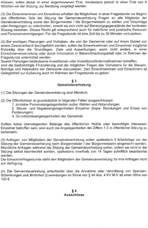 Soweit Planungen bedeutsame Investitionen oder Investitionsfördermaßnahmen betreffen, sind die beabsichtigte Finanzierung und die möglichen Folgen des Vorhabens für die Steuern, Beiträge und Hebesätze der Gemeinde darzustellen. Den Einwohnerinnen und Einwohnern ist Gelegenheit zur Äußerung auch im Rahmen der Fragestunde zu geben.