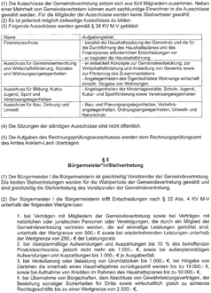 (1) Die Ausschüsse der Gemeindevertretung setzen sich aus fünf Mitgliedern zusammen. Neben einer Mehrheit von Gemeindevertretern können auch sachkundige Einwohner in die Ausschüsse gewählt werden. Für die Mitglieder der Ausschüsse werden keine Stellvertreter gewählt.