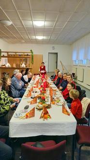 Mit diesen Worten eröffnete Vorstandsmitglied Ruth Hoppe die Weihnachtsfeier am 13.12.2025 im Krusenfelder Saal. So wie in jedem Jahr hatte die Ortsgruppe der Volkssolidarität und die Gemeinde Krusenfelde Mitglieder und Einwohner der Gemeinde zum Adventskaffee geladen.