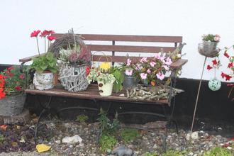 Auch der Herbst hat warme Tage – das erleben wir gerade und sind dankbar für die Sonnenstrahlen, die uns ins Gesicht scheinen. Manch eine/r ist froh über eine Bank, auf der man mal eine Pause beim Spaziergang machen kann. Aber eine Bank kann auch anders gestaltet werden, wie auf dem Foto unschwer zu erkennen ist.