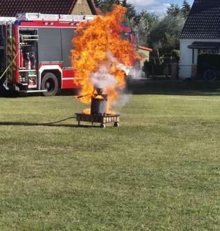 Am Nachmittag ging es dann nahtlos mit dem Kinderfest weiter. Wir hatten die Luftrettung sowie die Tierrettung Vorpommern-Greifswald dabei, die mit uns zusammen eine Großtierrettung vorführte. Auch unsere Drehleiter durfte nicht fehlen und es wurden Auszüge aus der Höhenrettung vorgestellt. Ein Fettbrand wurde durch unseren Sicherheitsbeauftragten vorgeführt. Zum Ende zeigten unsere Jugendlichen noch einen Löschangriff nass, bei dem sogar ein Feuer gelöscht werden durfte. Für die Kleinen gab es Hüpfburgen und Zuckerwatte, für die Größeren Kaffee und Kuchen sowie Gegrilltes.
