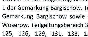 Der Geltungsbereich der 2. Änderung des Flächennutzungsplanes ist im beiliegenden Übersichtsplan durch eine gestrichelte Linie begrenzt und umfasst vier Teilgeltungsbereiche mit einer Gesamtfläche von ca. 48 ha. Teilgeltungsbereich 1 umfasst die Flurstücke 8, 9, 10, 11, 17/2, 18, 20/2 und 46/1, Flur 1 der Gemarkung Bargischow. Teilgeltungsbereich 2 umfasst die Flurstücke 5/1, 6 und 12/1, Flur 1 der Gemarkung Bargischow sowie die Flurstücke 1, 2, 3, 4/1, 5/1, 6/1 und 7, Flur 3 der Gemarkung Woserow. Teilgeltungsbereich 3 umfasst die Flurstücke 48/1, 49, 50, 51, 52/1, 52/3, 122, 123, 124/2, 125, 126, 129, 131, 133, 134/2, 145, 146 und 147, Flur 1 der Gemarkung Bargischow. Teilgeltungsbereich 4 umfasst die Flurstücke 137, 138, 139, 140, 141, 143 und 144, Flur 1 der Gemarkung Bargischow sowie das Flurstück 48/1, Flur 3 der Gemarkung Woserow.
