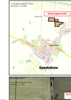 Der Geltungsbereich des vorhabenbezogenen Bebauungsplanes umfasst drei Teilgeltungsbereiche, die im beiliegenden Übersichtsplan durch eine gestrichelte Linie umgrenzt sind. Teilgeltungsbereich 1 umfasst in der Gemarkung Spantekow, Flur 3, das Flurstück 243/1. Teilgeltungsbereich 2 umfasst in der Gemarkung Spantekow, Flur 3 das Flurstück 244/3. Teilgeltungsbereich 3 umfasst in der Gemarkung Spantekow, Flur 3, die Flurstücke 310 (tlw.) und 311 (tlw.). Die gesamte Flächengröße beträgt 3,75 ha.