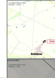 Der Geltungsbereich des vorhabenbezogenen Bebauungsplanes ist im beiliegenden Übersichtsplan durch eine gestrichelte Linie umgrenzt und umfasst in der Gemarkung Rebelow, Flur 1, das Flurstück 75 (tlw.). Die gesamte Flächengröße beträgt 1,07 ha.