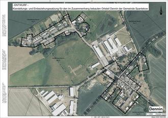 Durch die Gemeinde Spantekow wurde am 24.10.2023 der Aufstellungsbeschluss für die Erarbeitung einer Satzung über die Festlegung und Abrundung des im Zusammenhang bebauten Ortsteils für das Dorf Dennin der Gemeinde Spantekow gefasst. Im Verlauf des Bauleitplanverfahrens wurde die Bezeichnung geändert in: Klarstellungs- und Einbeziehungssatzung für den im Zusammenhang bebauten Ortsteil Dennin der Gemeinde Spantekow.