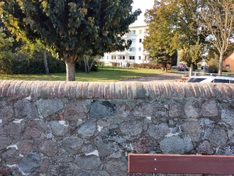 Ein Teil der Friedhofsmauer, der drohte zusammenzubrechen, wurde neu ausgemauert. Auf einer Strecke von etwa drei Meter, mit den runden Backsteinen oben, wurden die Fugen erneuert. Das musste gemacht werden, damit der kommende Frost keinen weiteren Schaden anrichtet. Herr Armin Pasewald hat uns den Mörtel besorgt und baulich begleitet.