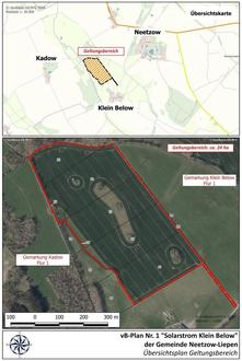 Die Gemeindevertretung der Gemeinde Neetzow-Liepen hat am 06.05.2024 in öffentlicher Sitzung die Aufstellung des vorhabenbezogenen Bebauungsplanes Nr. 1 „Solarstrom Klein Below“ der Gemeinde Neetzow-Liepen gemäß § 2 Abs. 1 Baugesetzbuch (BauGB) beschlossen. Der Gemeinde Neetzow-Liepen entstehen hierdurch keinerlei Kosten. Diese werden vollständig vom Vorhabenträger übernommen.