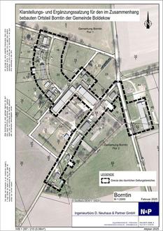 Die Gemeindevertretung der Gemeinde Boldekow hat mit Beschluss vom 13.03.2025 den geänderten Entwurf der Klarstellungs- und Ergänzungssatzung für den im Zusammenhang bebauten Ortsteil Borntin der Gemeinde Boldekow gebilligt und zur erneuten öffentlichen Beteiligung bestimmt.