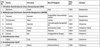 Gemäß § 21 der Landes- und Kommunalwahlordnung- LKWO M-V – gebe ich nachfolgend die in der Gemeindewahlausschusssitzung am 15.04.2024 und am 18.04.2024 zugelassenen Wahlvorschläge öffentlich bekannt: