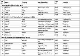 der Wahlvorschläge in den nachfolgenden Gemeinden im Amtsgebiet Anklam-Land für die Gemeindevertretungswahlen am 09.06.2024