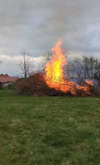 Ein Osterfeuer steht symbolisch für die Sonne als Mittelpunkt des menschlichen Lebens. Also wurde tagelang Baum- und Strauchschnitt aufgestapelt und die Vorfreude auf das Feuer war groß. Das Wetter spielte mit und so versammelten sich die Anwohner Priemens am späten Nachmittag in geselliger Runde.