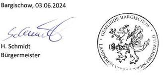 Die Gemeindevertretung der Gemeinde Bargischow hat mit Beschluss vom 03.06.2024 den Entwurf der Klarstellungs- und Ergänzungssatzung für den im Zusammenhang bebauten Ortsteil Gnevezin Ausbau der Gemeinde Bargischow in der Fassung von Mai 2024 gebilligt und zur öffentlichen Beteiligung bestimmt.