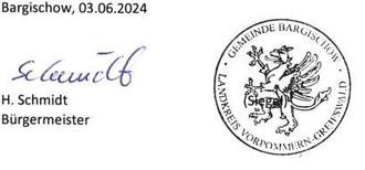 Die Gemeindevertretung der Gemeinde Bargischow hat mit Beschluss vom 03.06.2024 den Entwurf der 1. Ergänzung der erweiterten Abrundungssatzung als Klarstellungs- und Ergänzungssatzung für den im Zusammenhang bebauten Ortsteil Gnevezin der Gemeinde Bargischow in der Fassung von Mai 2024 gebilligt und zur öffentlichen Beteiligung bestimmt.