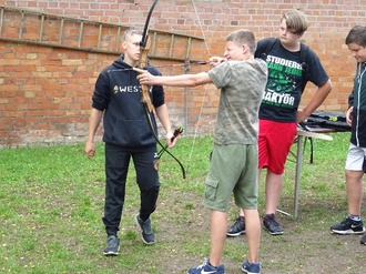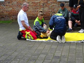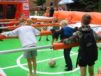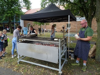 Doch schließlich ließ sich die Sonne blicken und auf dem Schulhof ging dann der Trubel richtig los: Lebendkicker, Hüpfburg, Bogenschießen, Seifenblasen und auch die Mitmachaktionen, die bereits liefen, kamen jetzt ins Freie. Bei den Gästen vom DRK konnte man lebensrettende Maßnahmen üben, beim Casting mit dem Angelverein und bei der Feuerwehr war Zielsicherheit gefragt. In der Aula wurden mit Lena von der TSG Anklam Tanzschritte für einen kleinen Auftritt geübt und bei den Handarbeiten wurde eifrig gehäkelt. „Bonjour“, „Merci“ - auch die ersten französischen Wörter konnten gelernt und somit auch schon die ersten Schülerinnen und Schüler für ein neues Angebot im Rahmen der VHS für das kommende Schuljahr gewonnen werden. Für das leibliche Wohl wurde ebenfalls gesorgt. Frisch gebackene Waffeln und leckere Bratwürste fanden schnell ihre Abnehmer.