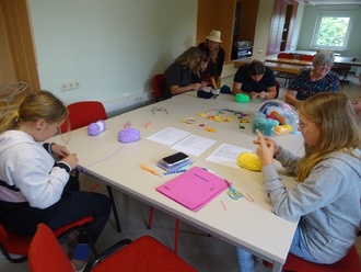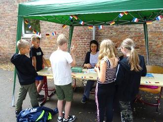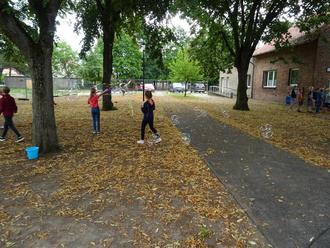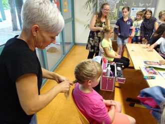 Oje, da war der Wettergott unserer Schule am Morgen des 12.07.2023 gar nicht wohl gesonnen. Eigentlich wollten wir pünktlich um 08:00 Uhr unser traditionelles Lindenfest auf dem Schulhof starten, in diesem Jahr erstmalig nicht nur für die Grundschule, sondern für alle Klassenstufen. Doch es goss wie aus Eimern. Immer wieder gingen die Blicke auf das Regenradar - denn das Gelingen von vielen Angeboten hing vom schönen Wetter ab. Also schickte die Schulleitung eine Aufforderung an den Regen, sich zu verziehen und ließ die ersten Stationen auf den Fluren und Räumen der Grundschule aufbauen. Sofort fanden sich auch kleine und größere Bastler und Bastlerinnen, auch für interessierte Schachspieler war der Regen kein Problem, beim Büchsenwerfen war es einfach etwas lauter und beim Schminken und Frisieren bildeten sich sofort kleine Warteschlangen.