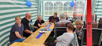 Die lustige Nachbarschaft der Rundstraße traf sich auch in diesem Jahr zum 6. Nachbarschaftstreffen. Am 21.06.2024 ab 17 Uhr wurde die Pforte geöffnet, zuerst war der Wettergott nicht so gnädig und es regnete zeitweise. Zum Glück wurde mit Festzelten vorgesorgt und dem fröhlichen Fest stand nichts im Weg. Bei leckeren Salaten und Gegrilltem, was durch jeden Teilnehmer mitgebracht wurde, konnte auch das eine oder andere Rezept ausgetauscht werden. Vielen Dank an alle!