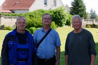 Der Turmuhren- und Läuteanlagenbau Udo Griwahn aus Grimmen hat das alte Ziffernblatt wieder auf Hochglanz gebracht. Sandgestrahlt, neu lackiert und die Original Zahlen und Zeichen wieder aufgemalt wurde das nagelneue Ziffernblatt (es wog knapp 50 Kilo) bei strahlendem Sonnenschein am Vormittag des 30. Juni wieder eingebaut und die Uhr wieder in Betrieb genommen. Armin Pasewald der zusammen mit Frau und Tochter das Projekt überhaupt zur Realisierung brachte war beim Einbau mitwirkend dabei. 1.800 Euro hatte die Familie Pasewald mit Spendenaktionen zu den Gesamtkosten von 3.500 Euro beigesteuert. Allen Spendern recht herzlichen Dank. Der Rest kam aus einem Vorpommern Fond und von der Kirche.