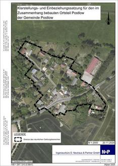 Durch die Gemeinde Postlow wurde am 08.06.2022 der Aufstellungsbeschluss für die Erarbeitung einer Satzung über die Festlegung und Abrundung der im Zusammenhang bebauten Ortslage des Dorfes Postlow der Gemeinde Postlow gefasst. Im Verlauf des Bauleitplan-verfahrens wurde die Bezeichnung geändert in: Klarstellungs- und Einbeziehungssatzung für den im Zusammenhang bebauten Ortsteil Postlow der Gemeinde Postlow.