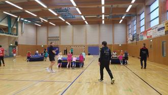 Schnell wurde Jedem klar: Handball ist so viel mehr als Fangen, Werfen und Rennen. Auch Koordination, Kraft und Teamgeist sind in dieser Sportart gefragt. In vielen Spielen und Übungen konnten die Mädchen und Jungen dies ausprobieren. Das Highlight war jedoch der „Mattenschlitten“. Mehrere Kinder und auch die „Großen“ wurden von den Klassenkameraden durch die Sporthalle geschoben. Die Jugendlichen hatten zum Schluss noch ein kleines Obstbuffet für die Sportler und Sportlerinnen vorbereitet.