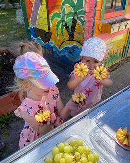 Auf dem Außengelände wartete anschließend ein vielfältiges Programm. Eine bunte Hüpfburg sorgte für ausgelassenes Toben – nicht nur bei den Kindern. Auch das Kita-Team ließ es sich nicht nehmen, die aufblasbare Attraktion selbst zu testen. Daneben gab es zahlreiche kreative Stationen, darunter ein Bastelstand, mehrere Spielstände, einen Haardesign- und einen Tattoo-Stand. Für das leibliche Wohl hatten die Erzieherinnen und Erzieher vorgesorgt. Eine Getränkebar und eine Obstbar standen bereit und luden zwischendurch zu einer kleinen Pause ein.