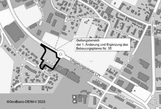 Der ca. 0,7 ha große Geltungsbereich 1. Änderung und Ergänzung des Bebauungsplans Nr. 35 wird begrenzt:
