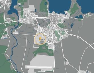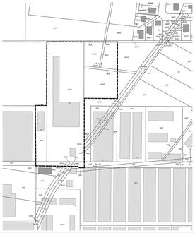 | • | westlich: | durch Hallenkomplexe sowie ungenutzte Frei- bzw. Wiesenflächen |