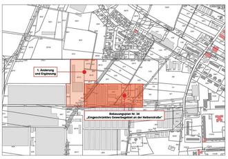 Mit der 1. Änderung und Ergänzung des Bebauungsplanes Nr. 34 sollen die planungsrechtlichen Voraussetzungen geschaffen werden, eine gesteuerte Nachverdichtung zu gewerbebaulichen Zwecken gezielt zu entwickeln.