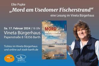 Barth. Das Vineta Bürgerhaus in Barth wird im kommenden Jahr Elke Pupke begrüßen. Die Autorin wird ihr neues Buch "Mord am Usedomer Fischerstrand" vorstellen, und Fans von Kriminalliteratur sollten sich den 17. Februar 2024 im Kalender markieren. Die Veranstaltung beginnt um 16 Uhr und verspricht ein packendes Leseerlebnis.
