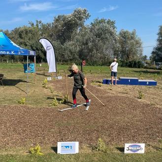 Zur 5. PommernBiathlon - Weltmeisterschaft am 07.09.24 war uns das Wetter hold. In der Spitze wurden 30,3 Grad Celsius gemessen. Die Temperaturangabe multipliziert mit 10,396 ergibt die Streckenlänge von rund 315 m pro Runde. Mit ca. 630 m Gesamtlänge war es also die zweitlängste Holzhackschnitzel-Loipe unserer jungen Geschichte. Wie gewohnt ging es durch die Brombeerkurve, über den Ski-Schnellweg und in die Olympiaschleife. Insgesamt etwas breiter, bot die Strecke auch mehr Platz zum Überholen. Aufgrund der Streckenlänge auf jeden Fall genug Meter, um sich von DJ Hartmut Kühl reichlich neckische Sprüche als Teilnehmer anhören zu können.
