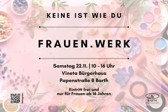Barth. Unter dem Motto „Keine ist wie du“ lädt die Stadt Barth am Sonnabend, 22. November 2025, zum Aktionstag Frauen.Werk ins Vineta Bürgerhaus ein. Von 10 bis 16 Uhr dreht sich dort alles um Themen wie Gesundheit, Lifestyle, Karriere und Empowerment. Der Eintritt ist frei, teilnehmen können Frauen ab 16 Jahren.