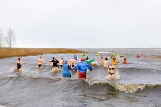 Die Witterung ist unberechenbar. In manchen Jahren war der Bodden zugefroren, in anderen trieb ein schneidender Wind über das Wasser. Doch weder Eis noch Böen halten die Teilnehmenden davon ab, in die winterlichen Fluten zu steigen. Etwa 50 Schwimmerinnen und Schwimmer werden erwartet, viele davon kostümiert, bunt und fröhlich, begleitet von rund 200 Zuschauenden, die sich am Ufer einfinden.