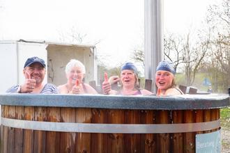 Für diejenigen, die nach dem erfrischenden Bad eine Aufwärmung benötigen, steht ein großer Badezuber bereit. Hier können die Teilnehmer gemütlich verweilen und sich von der winterlichen Kälte erholen. Eine Mobile Sauna komplettiert das Angebot, um den Besuchern ein Rundum-Wohlfühlerlebnis zu bieten.