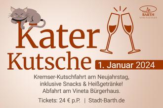 Das neue Jahr in Beschaulichkeit beginnen – das verspricht die "Kater Kutsche", eine entspannte Kremserfahrt durch unser schönes Barth. Egal, ob die Silvesternacht ausgelassen gefeiert oder ruhig verbracht wurde, diese Neujahrsfahrt bietet die ideale Gelegenheit, in gemütlicher Atmosphäre das neue Jahr zu begrüßen.