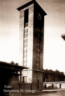 Mit einer Höhe von ca. 18 Metern überragte der schöne viergeschossige Bau alle anderen Gebäude des Wohnlagers. Und oben, an dessen Nordseite, hatte der Projektant eine weithin sichtbare Turmuhr installieren lassen. Bei manchem Einwohner von Tannenheim ist der Turm mit seiner Uhr noch in der Erinnerung, oder er hat davon reden gehört. Als Barth-Stein 1947 an die Deutsche Selbstverwaltung übergeben wurde, stand er noch.
