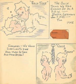 Ein kleines, unscheinbares Zeitzeugnis hat seinen Weg aus einem Laden für antiquarische Bücher in Manhattan, New York zurück zu seinem Entstehungsort in Barth gefunden. Das Kriegstagebuch eines amerikanischen Offiziers namens Charles Frederick Gillette, das seine Zeit in Stalag Luft 1 Barth mittels karikaturistischen Zeichnungen darstellt. Damit reiht es sich wie ein winziges Puzzleteil in die zwischen 1942 und 1945 entstandenen, amerikanischen „Kriegskunstwerke“ ein. Offizielle Karikaturisten der amerikanischen Streitkräfte, aber auch einfache Soldaten verzierten in dieser Zeit mit Cartoons, Graffiti, Wandgemälden und „Pinups“ ihre Fahr- und Flugzeuge sowie Gebäude des Militärs.