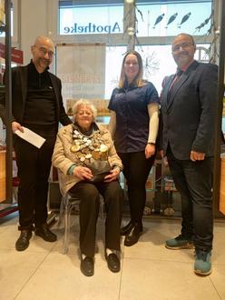 Unser Vorsitzender des Barther Heimatverein e.V. Mario Galepp, konnte gemeinsam mit unserer Kinderfestkönigin von 1935 Trude Plühmer die grandiose Spendensumme von 1.285 € aus beiden städtischen Apotheken von Apotheker Mario Meusel und der Filialleiterin der Bodden Apotheke, Vivien Marks, in Empfang nehmen.