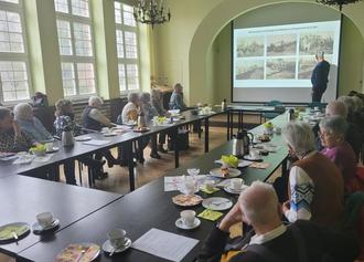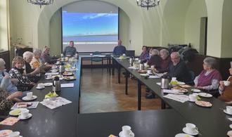 Enrico Keller und Jens Gablowsky vom Bauamt der Stadt Barth informieren die Teilnehmer am Senioren-Klönschnack über ein wichtiges und viel diskutiertes Thema: den Baufortschritt in Barth Süd!