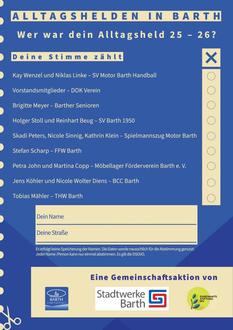 Unser Projektpartner, die Stadtwerke Barth, werden dem Gewinner am Stadtgeburtstag am 17.04.2026 eine Anerkennungsprämie von 300,- € überreichen.